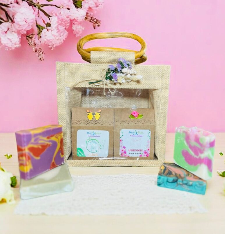 Offrez-vous le coffret découverte de savons naturels parfumés, comprenant un savon Holi, un savon Cybèle, un savon Aphrodite et un savon Oshun. Chaque savon vous transporte dans un univers sensoriel unique : voyagez en Inde avec le savon Holi et son parfum d’encens indien, détendez-vous avec le savon Cybèle aux huiles essentielles de verveine citronnée et petit grain bigarade, séduisez avec le savon Aphrodite à la fleur de magnolia et thé blanc, et terminez en terre d’Afrique avec le savon Oshun et son parfum envoûtant. Offrez-vous un voyage olfactif et sensoriel avec ce coffret de savons parfumés en toile de jute, idéal pour prendre soin de votre peau et éveiller vos sens.